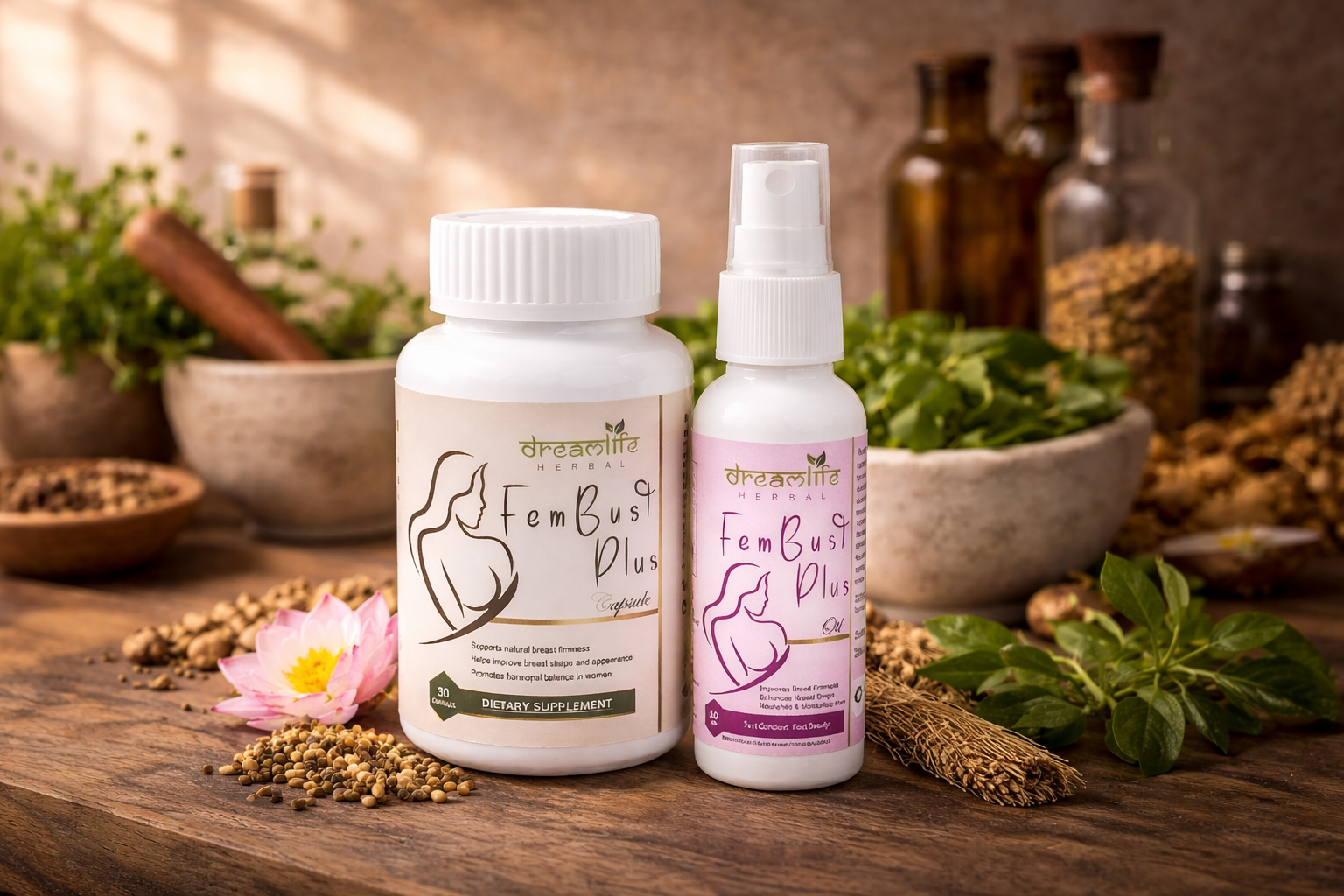 DreamLife Herbal FemBust Plus is developed using herbal ingredients inspired by traditional wellness practices. The formula focuses on supporting natural firmness, improved appearance, and skin hydration.
